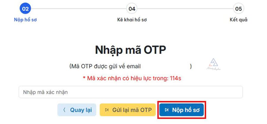 ➧ Nhập mã OTP gửi về email ➜ Ấn “Nộp hồ sơ” để hoàn thành thủ tục kê khai;