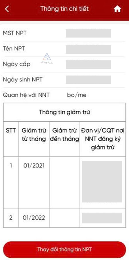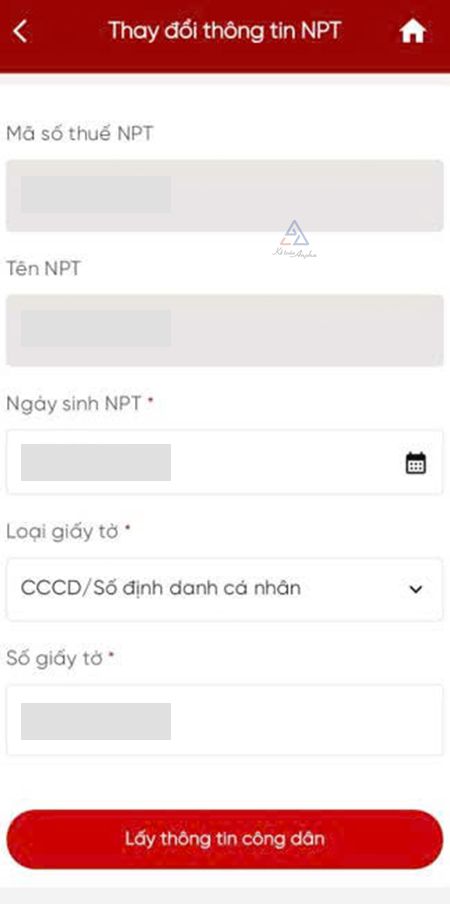 ➧ Tại màn hình Thông tin chi tiết NPT ➜ Ấn “Thay đổi thông tin NPT”;