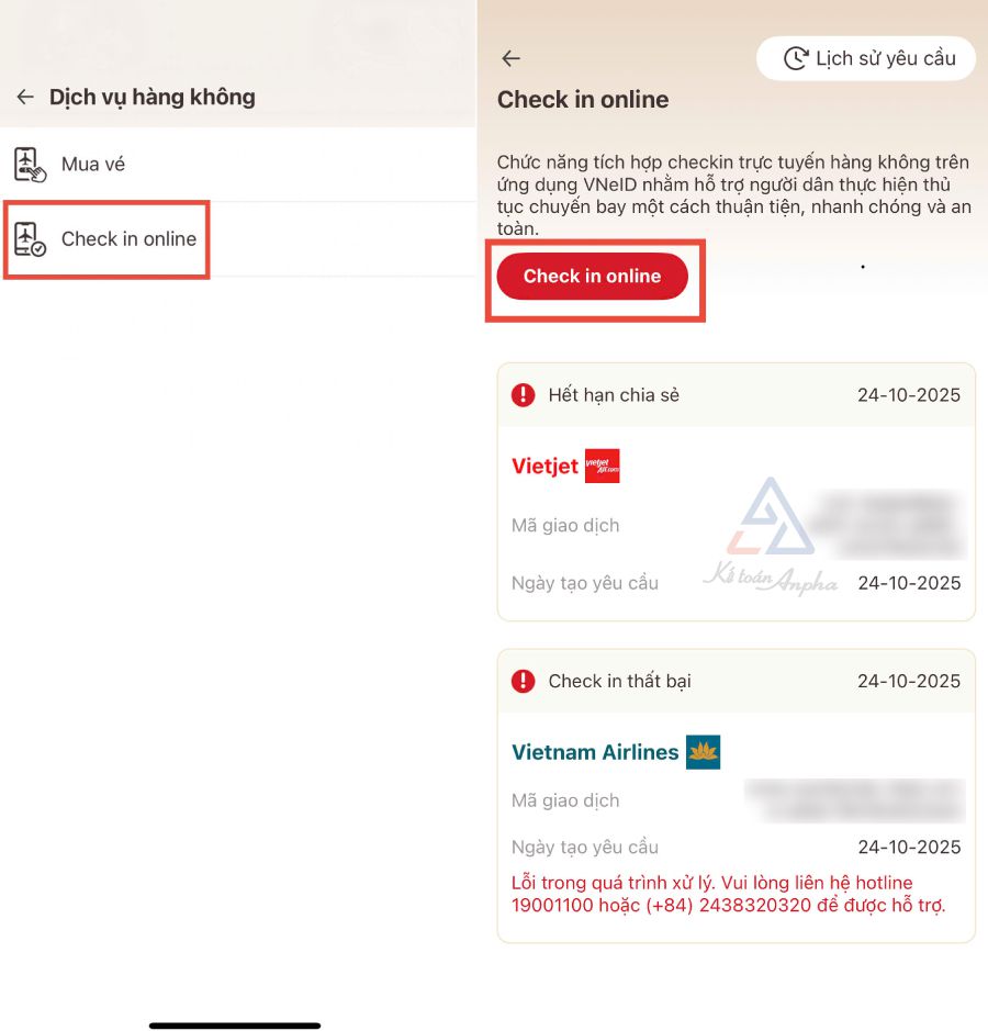 Hiện tại, app VNeID (đối với tài khoản đã định danh mức 2) chỉ hỗ trợ làm thủ tục trực tuyến cho những hành khách đi hãng Vietnam Airlines và Vietjet Air. Nếu bạn sử dụng dịch vụ của các hãng hàng không khác thì có thể tham khảo 2 cách check in online vé máy bay còn lại.