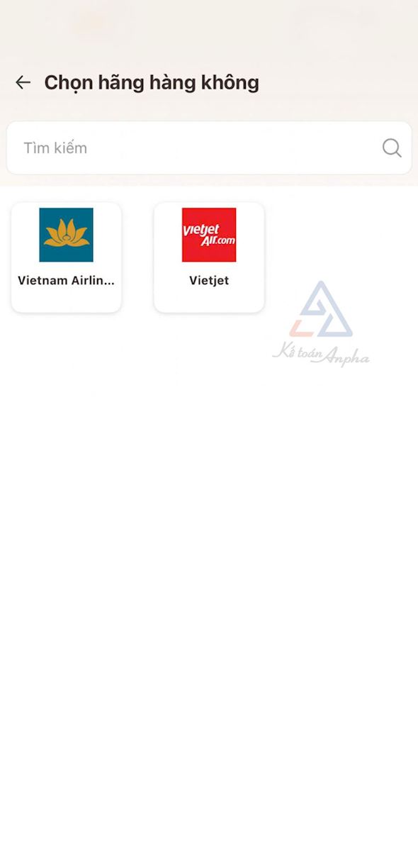 ➤ Bước 4: Chọn hãng hàng không tương ứng