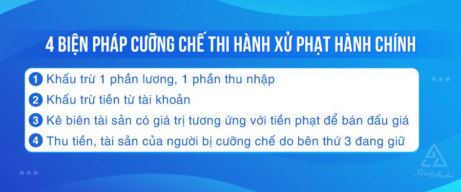 Có 4 biện pháp cưỡng chế thi hành xử phạt hành chính gồm: