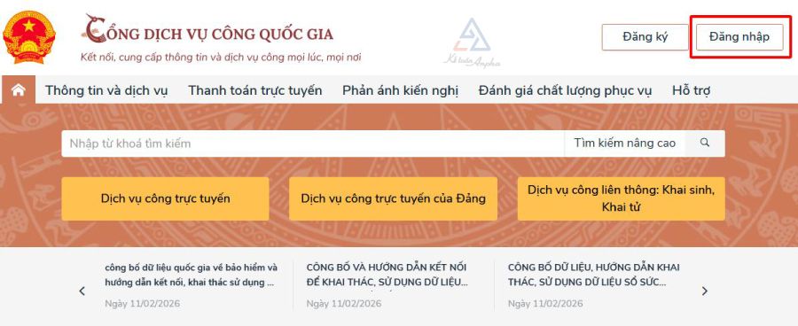 - Cách 2: Đăng ký online trên Cổng dịch vụ công quốc gia.