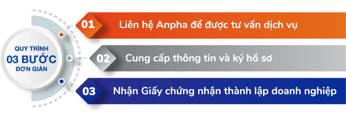 • Chỉ sau 03 bước đơn giản, Anpha cam kết có Giấy phép kinh doanh và con dấu chỉ sau 03 ngày.