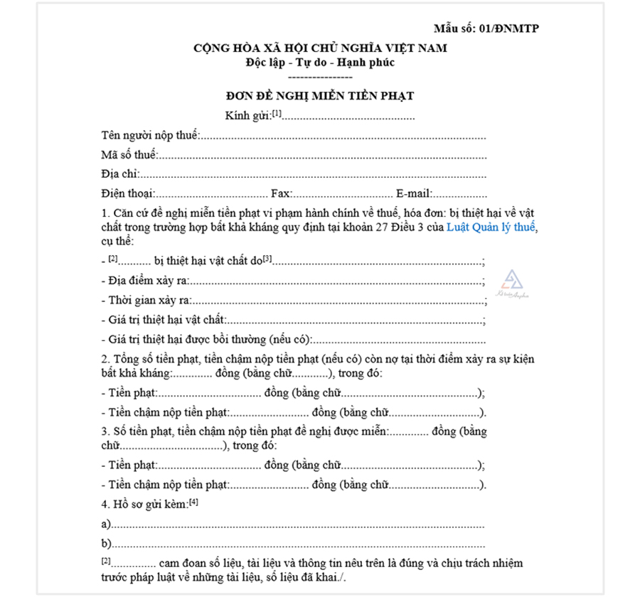 Mẫu đơn đề nghị miễn tiền phạt