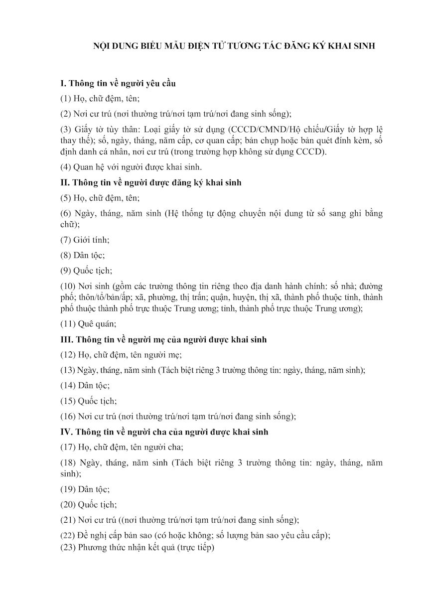 Mẫu hộ tịch điện tử tương tác đăng ký khai tử