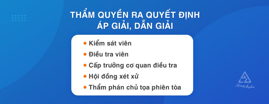 Theo quy định, thẩm quyền ra quyết định áp giải, dẫn giải đều thuộc về các cá nhân, cơ quan sau: