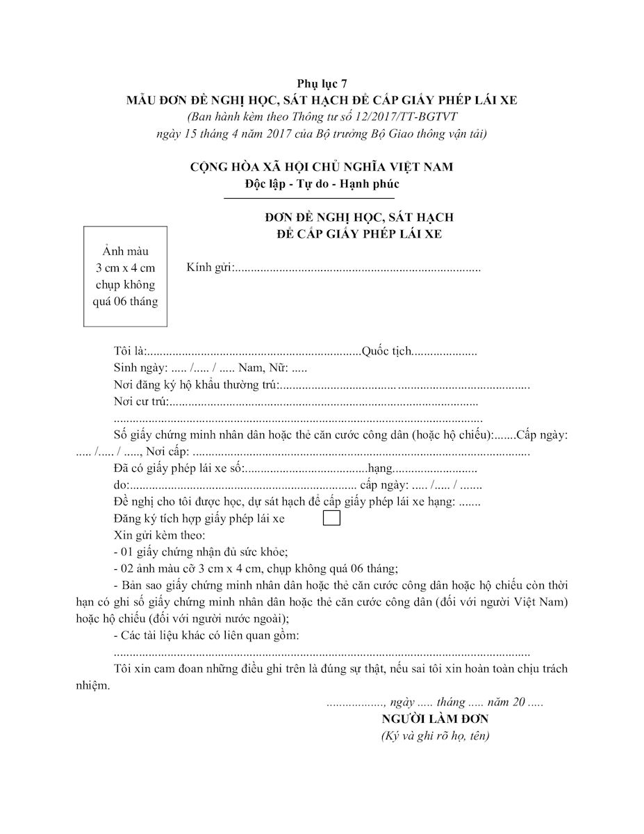 • Đơn đề nghị đổi giấy phép lái xe cho người nước ngoài (mẫu đơn đề nghị đổi giấy phép lái xe cơ giới đường bộ)