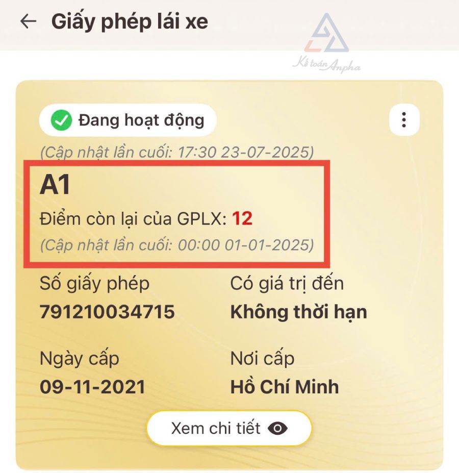 >> Cách xem điểm giấy phép lái xe trên VNeID.
