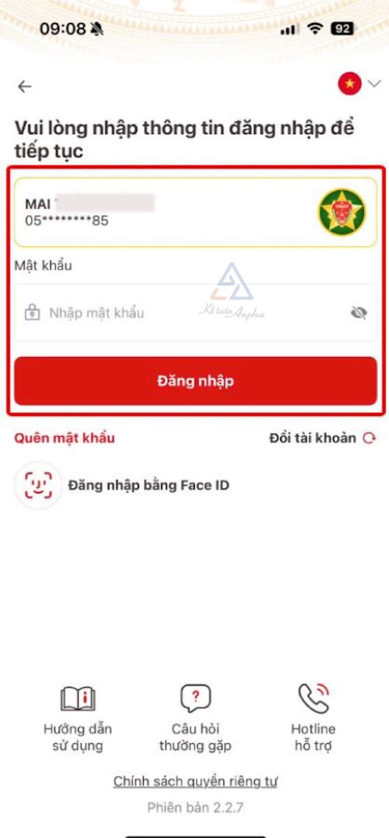 ➤ Bước 1: Đăng nhập tài khoản VNeID mức 2;