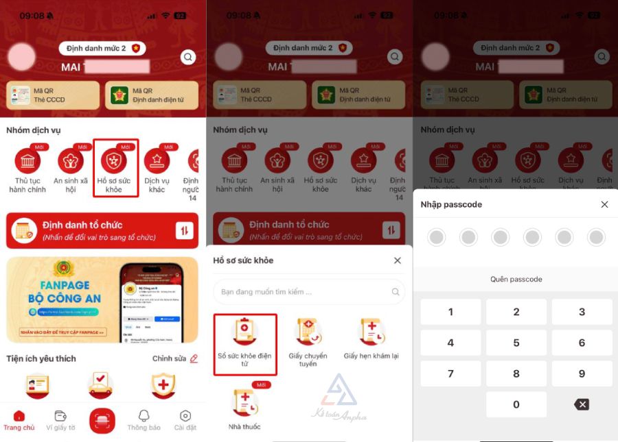 - Bước 2: Chọn “Hồ sơ sức khỏe” ➜ chọn “Sổ sức khỏe điện tử” và nhập passcode;