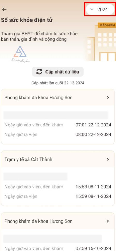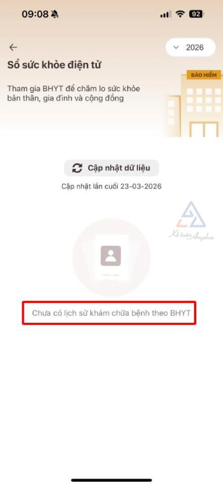 Trong một số trường hợp, hệ thống chưa cập nhật thông tin hoàn toàn, nên bạn có thể bấm “Cập nhật dữ liệu” để cập nhật lại thông tin khám chữa bệnh mới nhất.