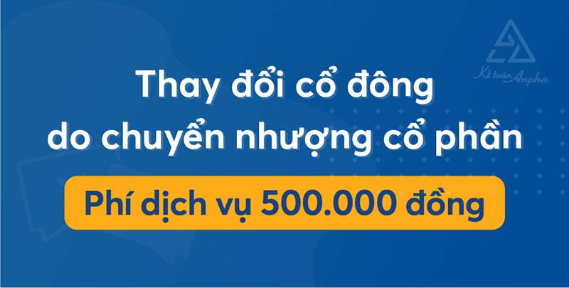 Phí dịch vụ chỉ 500.000đ khi thay đổi cổ đông theo hình thức chuyển nhượng tại Anpha (nếu không thay đổi các nội dung khác trên GPKD). Với phí này, Anpha sẽ thực hiện nộp hồ sơ khai thuế TNCN cho cổ đông chuyển nhượng. Gọi cho Anpha theo số 0984 477 711 (Miền Bắc), 0903 003 779 (Miền Trung) hoặc 0938 268 123 (Miền Nam) để được hỗ trợ tư vấn miễn phí.