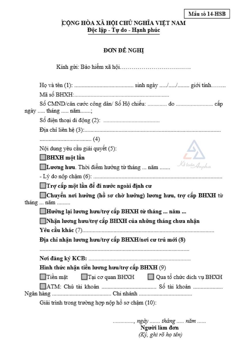 >> TẢI MIỄN PHÍ: Đơn đề nghị thay đổi nơi nhận lương hưu - Mẫu số 14-HSB.
