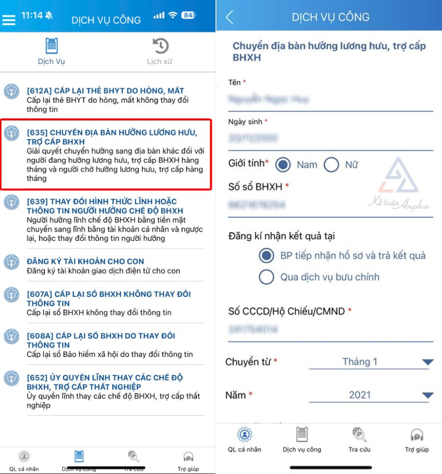 ➧ Bước 2: Chọn mục “[635] CHUYỂN ĐỊA BÀN HƯỞNG LƯƠNG HƯU, TRỢ CẤP BHXH” và điền các thông tin theo yêu cầu trên màn hình;
