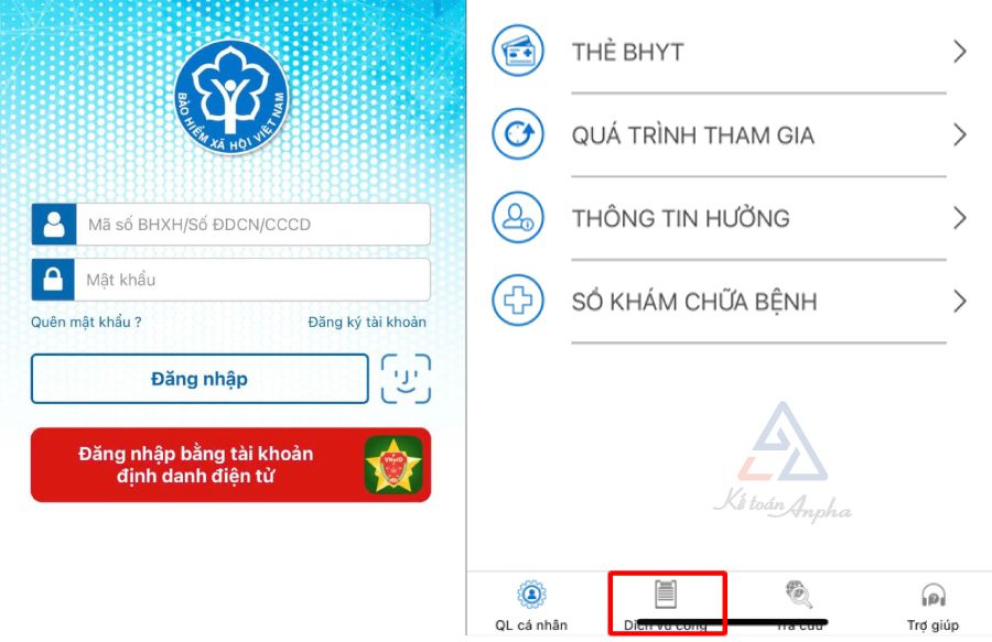 ➧ Bước 1: Đăng nhập vào ứng dụng VssID ➜ chọn “Dịch vụ công”;