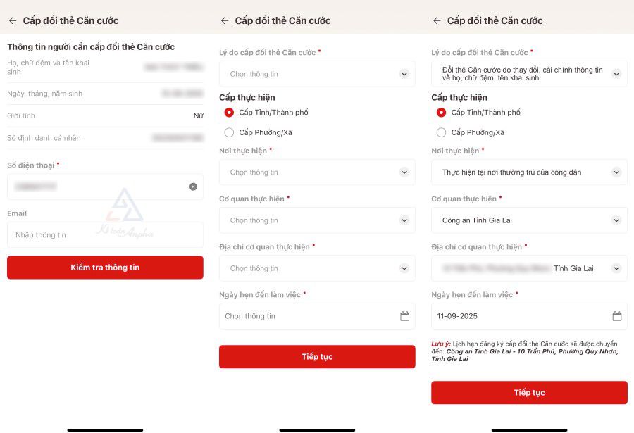 ➧ Bước 3: Tại đây bạn bấm “Kiểm tra thông tin”, sau đó điền các thông tin theo yêu cầu trên màn hình và bấm chọn “Tiếp tục”.