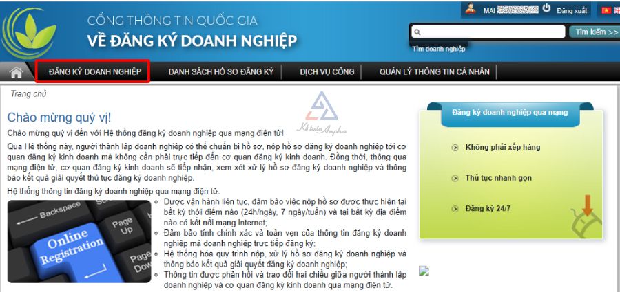 - Cách 1: Đăng ký địa điểm kinh doanh online trên Cổng thông tin quốc gia;