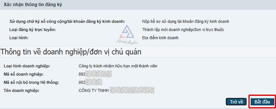 Tại đây bạn nhấn “Bắt đầu” để tiến hành đăng ký địa điểm kinh doanh.