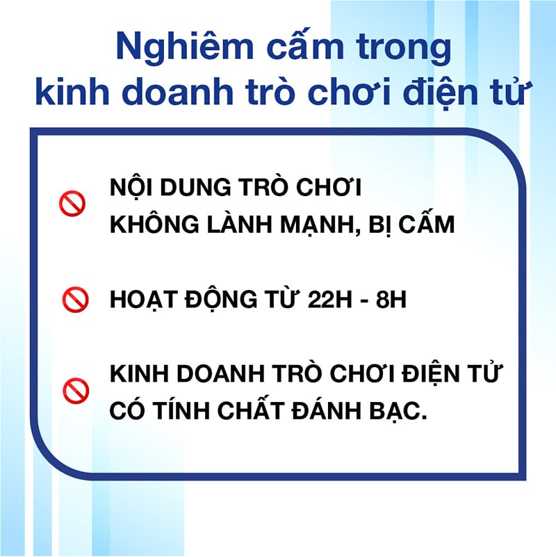 - Nghiêm cấm tổ chức kinh doanh trò chơi điện tử có tính chất đánh bạc.