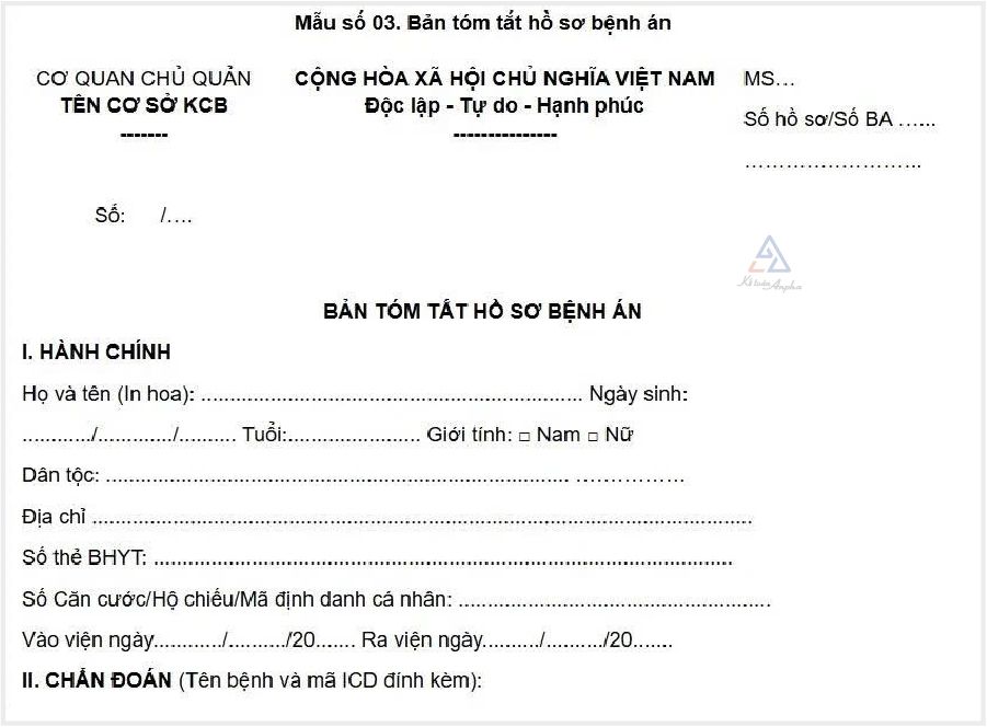 >> TẢI MIỄN PHÍ: Mẫu 03 - Bản tóm tắt hồ sơ bệnh án.