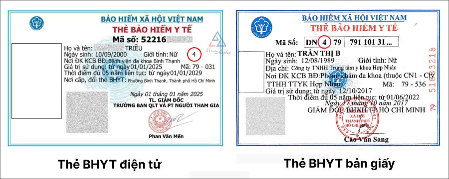 - Đối với mẫu thẻ BHYT điện tử: Mã mức hưởng BHYT đặt ở liền kề sau mục “Giới tính”;