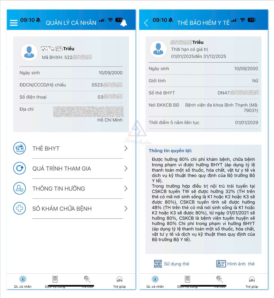- Bước 3: Theo dõi mức hưởng BHYT ở mục “Thông tin quyền lợi”.