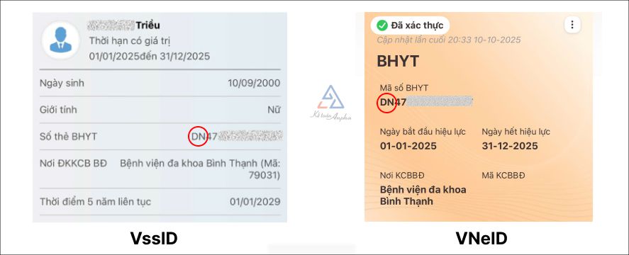 - Trên VssID: Mã đối tượng tham gia BHYT thể hiện trên mục “Số thẻ BHYT”;