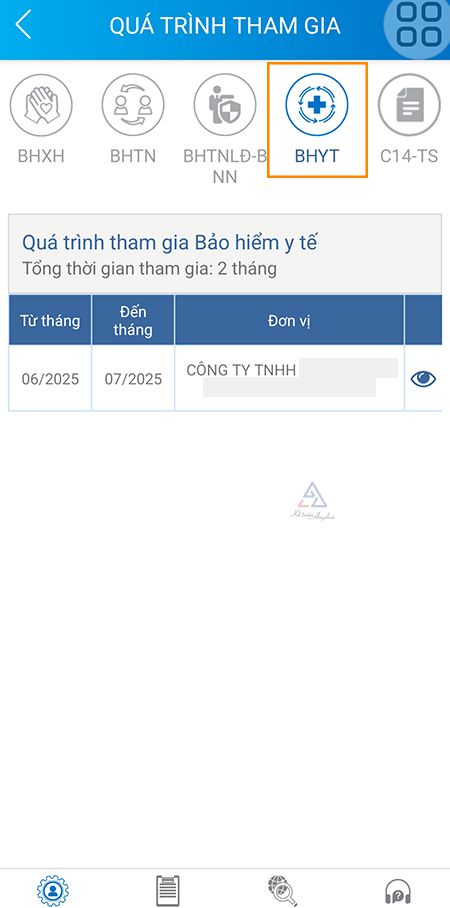 - Bước 3: Chọn phần "BHYT" để xem chi tiết quá trình đóng BHYT của bạn. Ứng dụng VssID sẽ hiển thị các thông tin như: