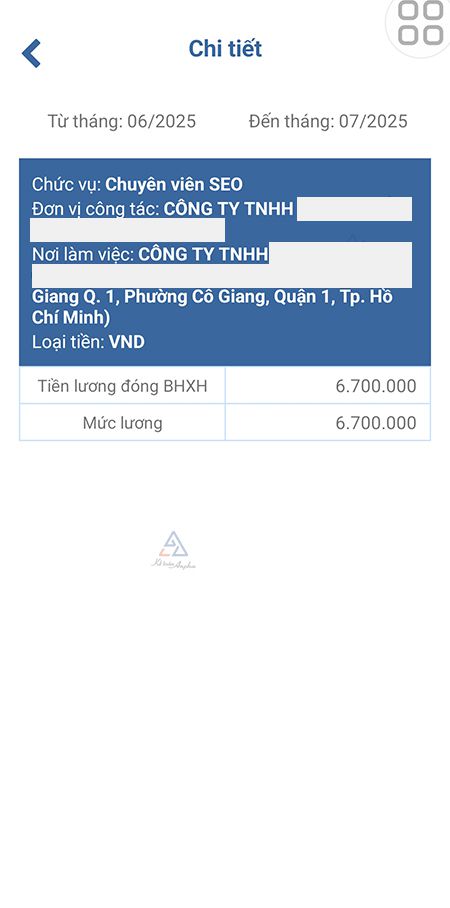 - Bước 4: Để xem chi tiết mức lương, hệ số lương, tiền lương đóng BHYT tại từng thời điểm của từng đơn vị sử dụng lao động, bạn chọn biểu tượng 👁.