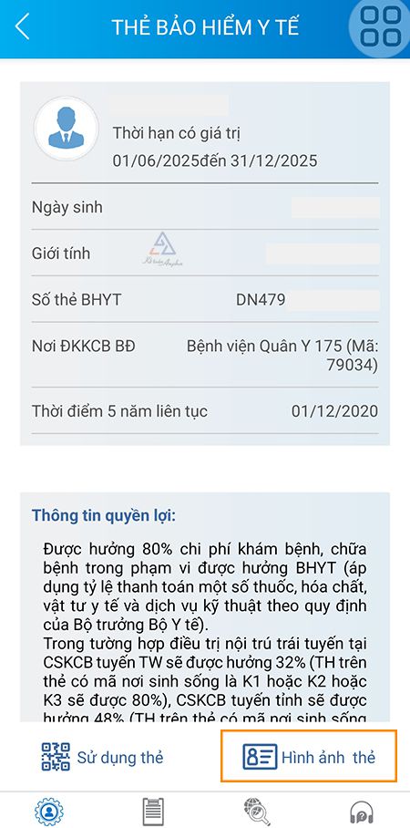 - Bước 4: Nếu bạn muốn tra cứu hình ảnh thẻ BHYT, chọn phần “Hình ảnh thẻ” bên dưới thông tin quyền lợi BHYT.